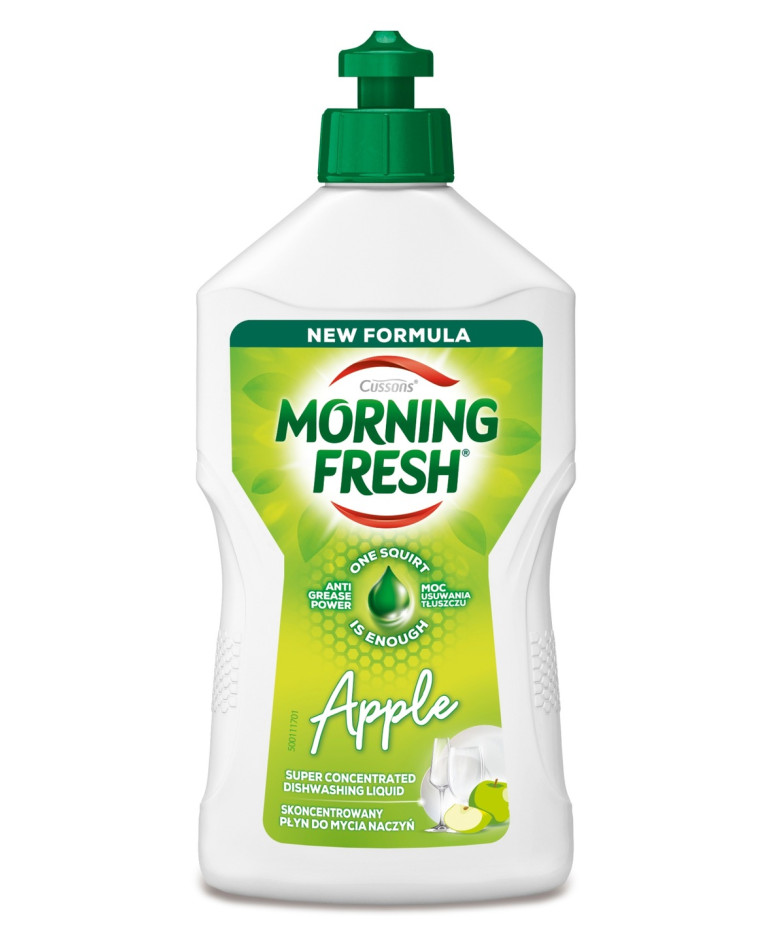 Morning Fresh Apple to skuteczny i wydajny płyn do mycia naczyń z zapachem świeżych jabłek. Doskonale usuwa tłuszcz i zabrudzenia, zapewniając długotrwałe i orzeźwiające doznania podczas mycia naczyń.