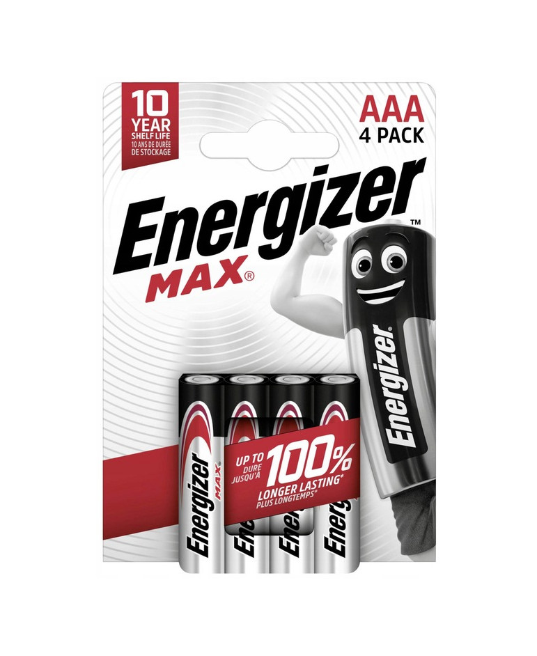 Baterie Energizer Max to wzmocnione baterie alkaliczne z innowacyjną technologią, dzięki której zachowują moc nawet do 10 lat od daty produkcji, dzięki czemu trzymane na zapas lub włożone do rzadko używanych urządzeń z czasem nie tracą mocy. Tym samym zawsze masz pewność, że baterie będą gotowe za każdym razem, gdy ich potrzebujesz.