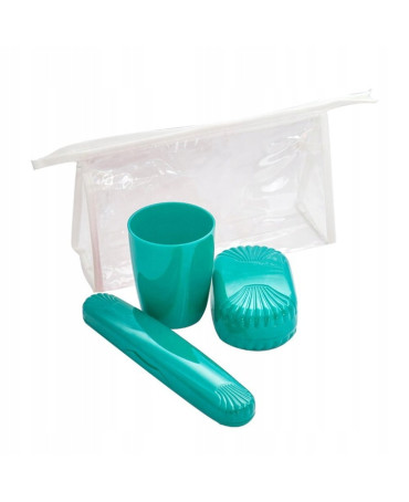 Podróżny zestaw toaletowy w nieprzemakalnym, praktycznym etui. Idealnie sprawdzi się w każdej podróży i pomoże w zachowaniu porządku.