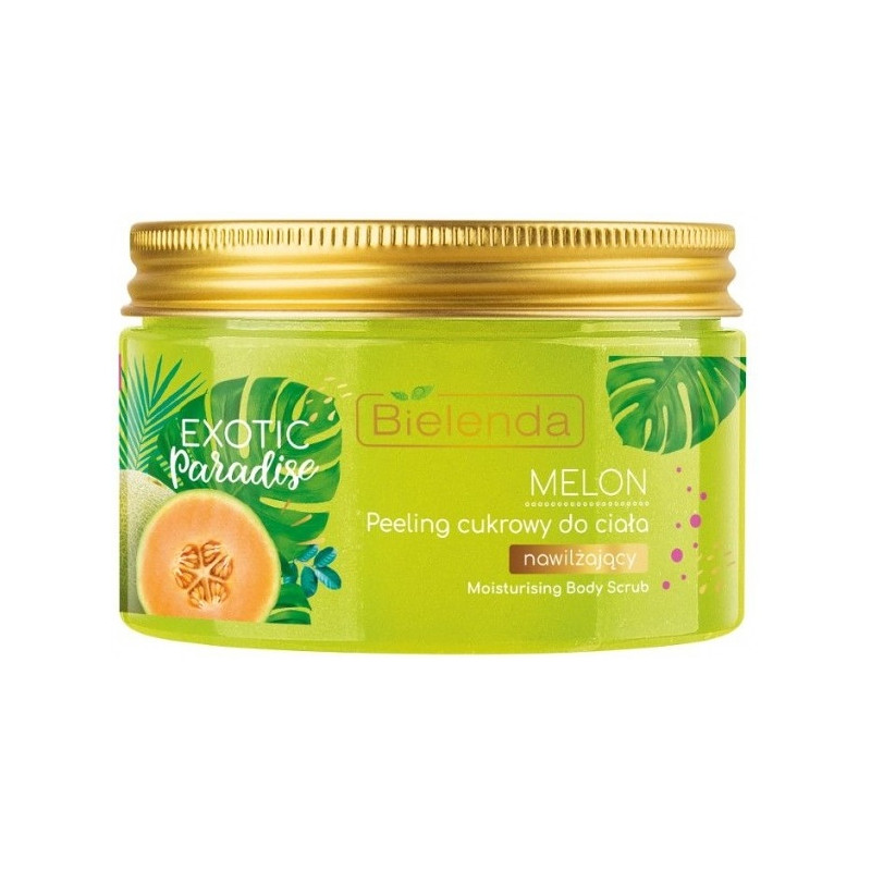 Exotic Paradise nawilżający peeling cukrowy do ciała Melon doskonale nawilża, wygładza i odświeża ciało. Zastosowana formuła łączy działanie oczyszczających kryształków naturalnego cukru oraz pielęgnacyjnych składników aktywnych.