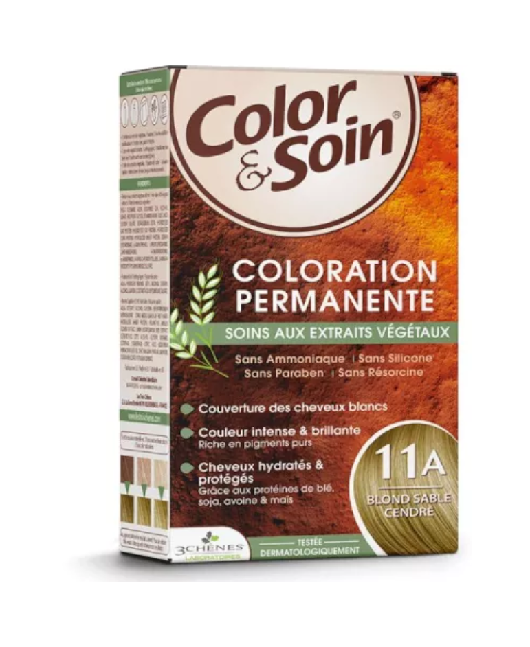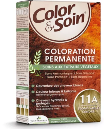 COLOR & SOIN Trwała farba do włosów na bazie ekstraktów roślinnych, 11A Popielaty piaskowy blond