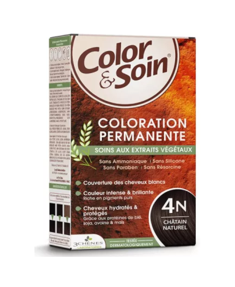 COLOR & SOIN Trwała farba do włosów na bazie ekstraktów roślinnych, 4N Szatyn naturalny