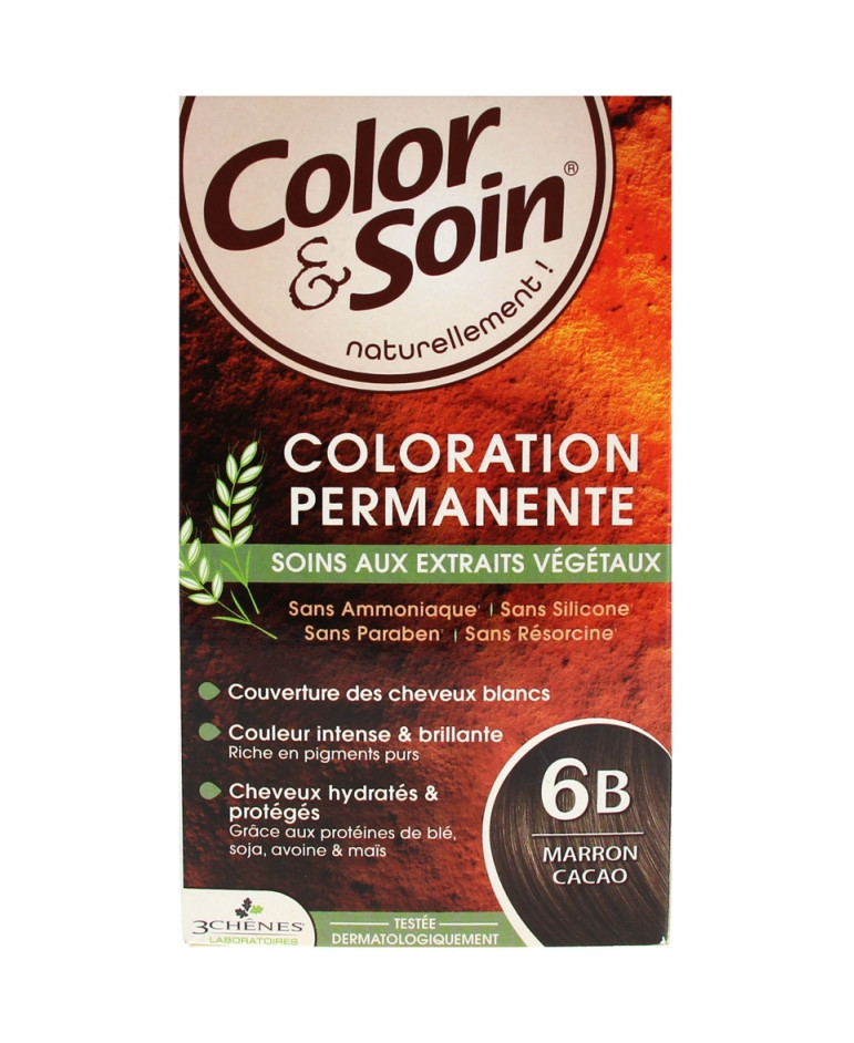 COLOR & SOIN Trwała farba do włosów na bazie ekstraktów roślinnych, 6B Brąz-kakao