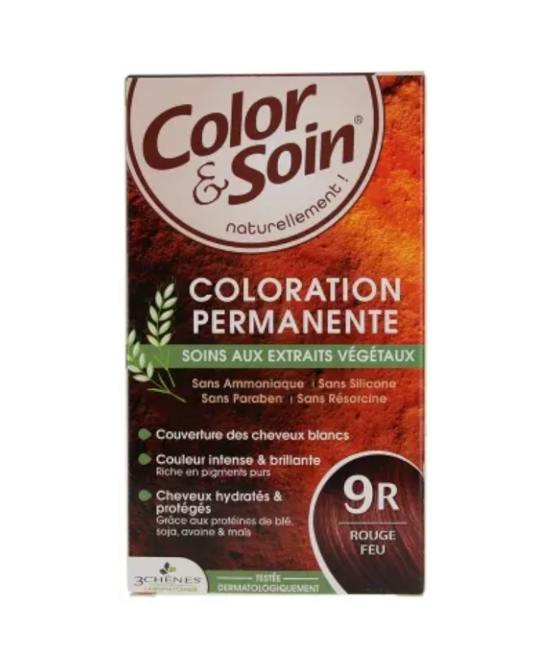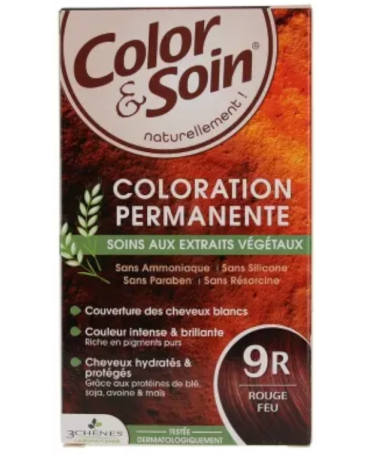 COLOR & SOIN Trwała farba do włosów na bazie ekstraktów roślinnych, 9R Płomienny czerwony