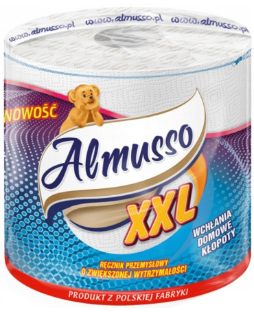 Almusso XXL to wielofunkcyjny, celulozowy ręcznik stworzony z dwóch grubych i mocnych warstw papieru o zwiększonej wytrzymałości.