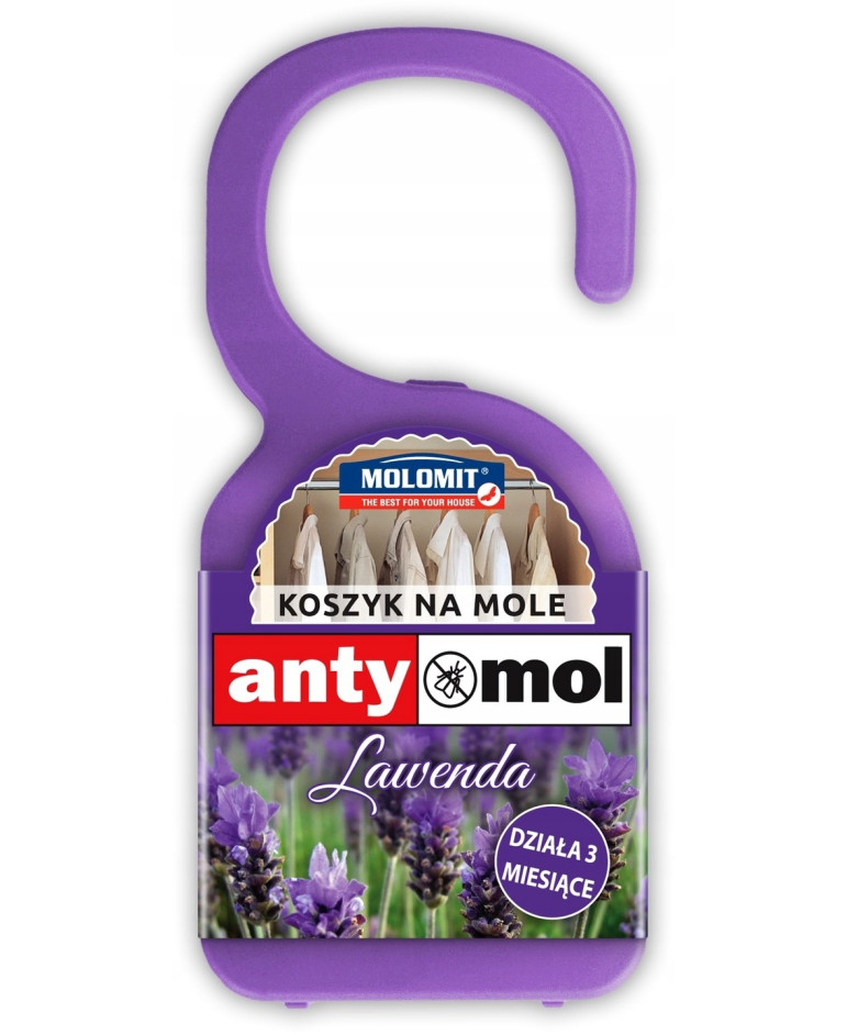 Koszyczek Lawendowy Molomit sutecznie zabezpiecza odzież wykonaną z futra, tkanin wełnianych, jedwabnych oraz włókien mieszanych naturalno-sztucznych.