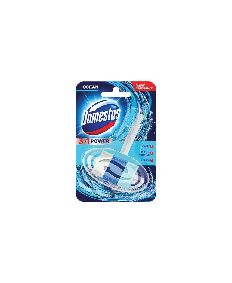 Kostka toaletowa Domestos o potrójnym działaniu: odświeża i zapobiega osadzaniu się kamienia, czyści, działa antybakteryjnie. Pachnący pasek żelowy pozostawia długo trwały, świeży zapach.