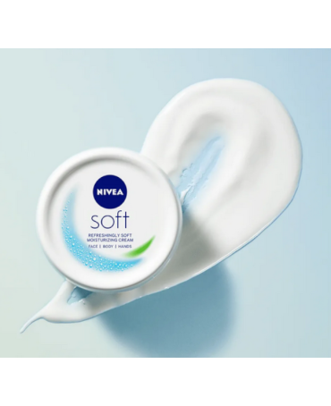 Krem intensywnie nawilżający NIVEA Soft do twarzy ciała i rąk. Specjalna, ulepszona formuła gwarantuje kompleksowe nawilżenie oraz idealną codzienną pielęgnację. Krem tworzy doskonałą barierę ochronną która wspomaga ochronę przed czynnikami zewnętrznymi.