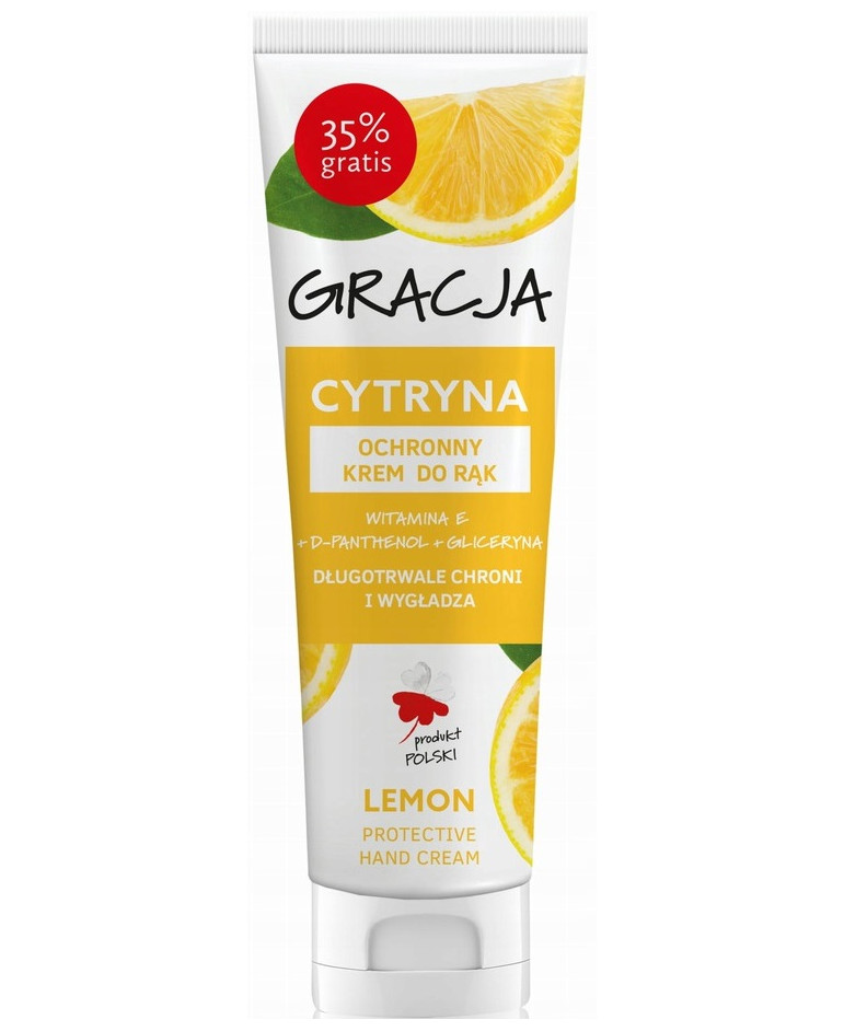 Krem ochronny do rąk – cytrynowy, przeznaczony do codziennej pielęgnacji rąk i paznokci, zapewniający doskonałą kondycję. Polecany do każdego typu skóry, szczególnie suchej, wrażliwej i narażonej na codzienne prace domowe i częste kontakty z detergentami oraz szkodliwym działaniem czynników zewnętrznych (wiatrem, słońcem, chlorowaną wodą).
