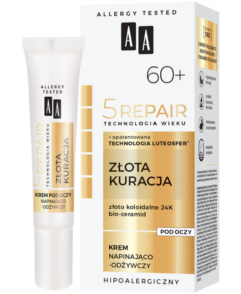 AA TECHNOLOGIA WIEKU 5 Repair to przełomowa seria aktywnych, multifunkcjonalnych kremów, która działa kompleksowo w pięciu najważniejszych obszarach, odpowiedzialnych za spowalnianie procesu starzenia się skóry i silne działanie naprawcze (nawilża, odbudowuje, wzmacnia, stymuluje i chroni).