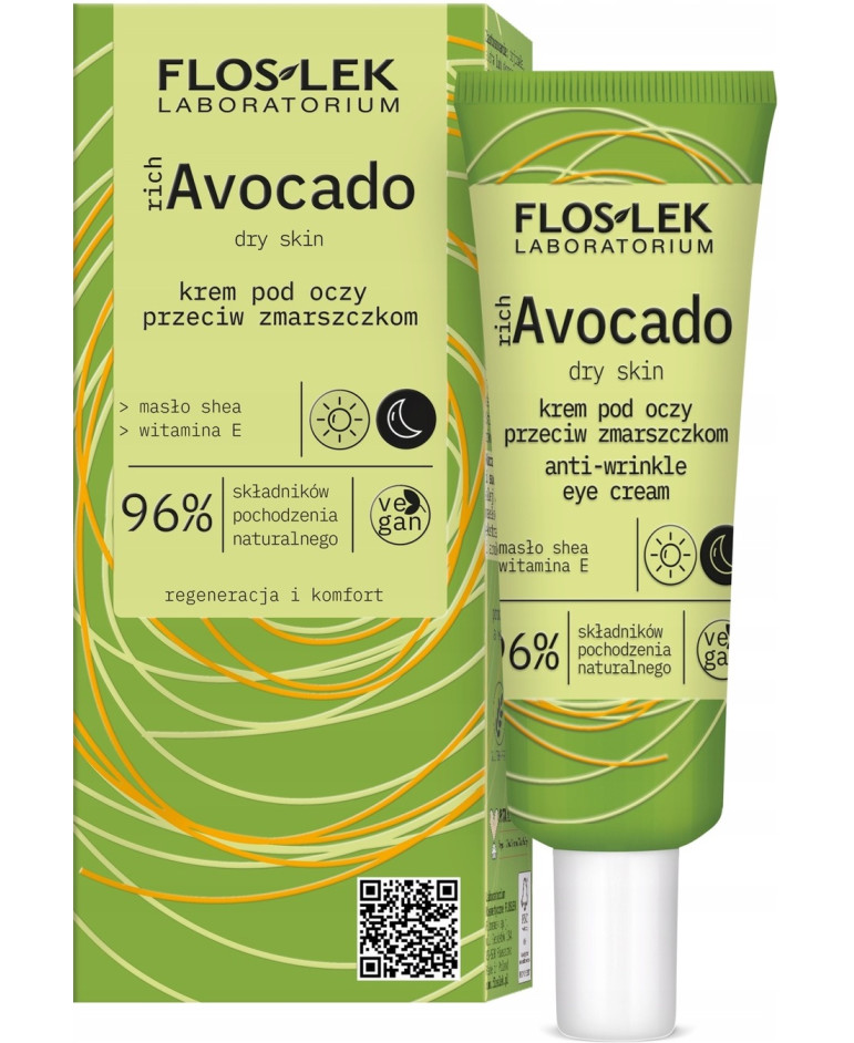 Odżywczy, wegański krem przeciwzmarszczkowy pod oczy dla cery dojrzałej, suchej lub okresowo odwodnionej, wymagającej odżywienia i uzupełnienia lipidów, z tendencją do wiotczenia i powstawania zmarszczek. Aby w pełni docenić ich działanie, konieczna jest regularna aplikacja kremu pod oczy z olejem awokado firmy Floslek. Zauważysz wówczas, że kosmetyk pomaga zmniejszyć widoczność cieni i worków pod oczami, a także zredukować zmarszczki. Skóra staje się wygładzona, zrelaksowana i miękka w dotyku.