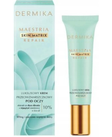 Dermika Maestria przedstawia luksusowy krem przeciwzmarszczkowy dedykowany pielęgnacji skóry wokół oczu, zarówno na dzień, jak i na noc. Skomponowany specjalnie dla dojrzałej i wrażliwej skóry, ten krem działa na obszar szczególnie narażony na widoczne oznaki starzenia, pomagając zmniejszyć widoczność zmarszczek i wzmocnić skórę wokół oczu, co dodatkowo rozświetla spojrzenie.