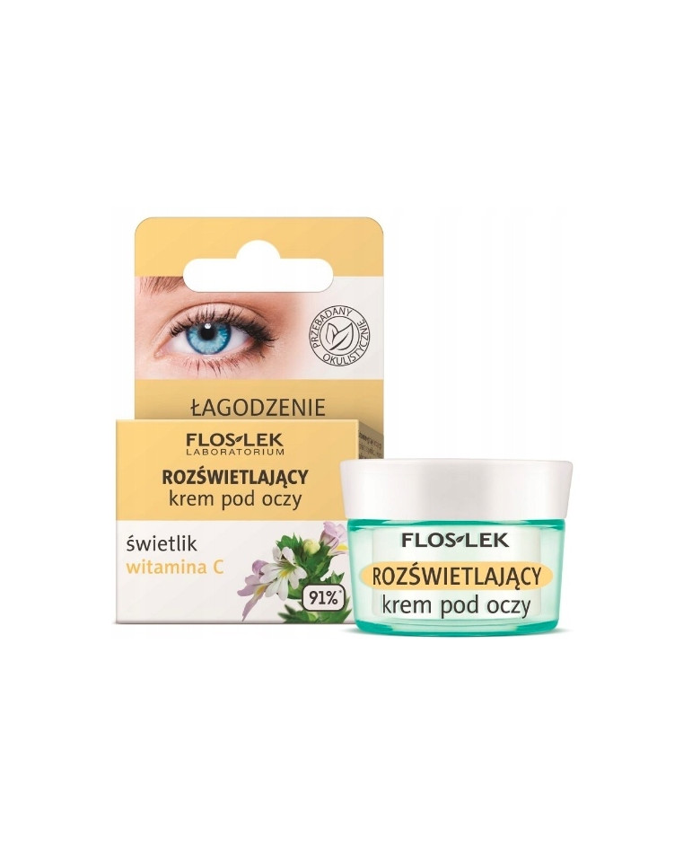 Gładka i rozjaśniona skóra okolic oczu o jednolitym kolorycie.