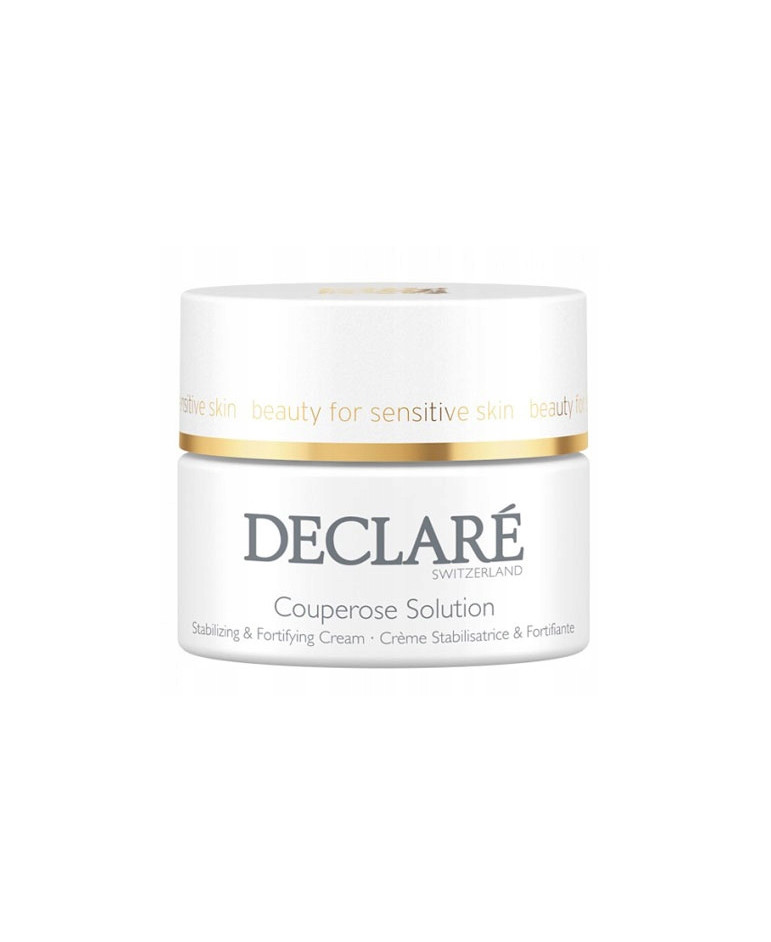 Stabilizujący i wzmacniający krem Declare Stress Balance Couperose Solution do wrażliwej cery naczynkowej (kuperoza) i z trądzikiem różowatym (rosacea). Unikalna kompozycja substancji aktywnych redukuje widoczne zaczerwienienia, wzmacnia barierę ochronną oraz wspomaga naturalne funkcje skóry.