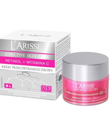 Krem z wit. C do twarzy L’ARISSE EFFECTIVE SKIN CARE 5D retinol + witamina C powstał z myślą o specjalnych potrzebach skóry dojrzałej wymagającej intensywnego działania przeciwzmarszczkowego. Regularnie stosowany pozwala na wygładzenie zmarszczek i przywrócenie skórze młodzieńczego blasku!
