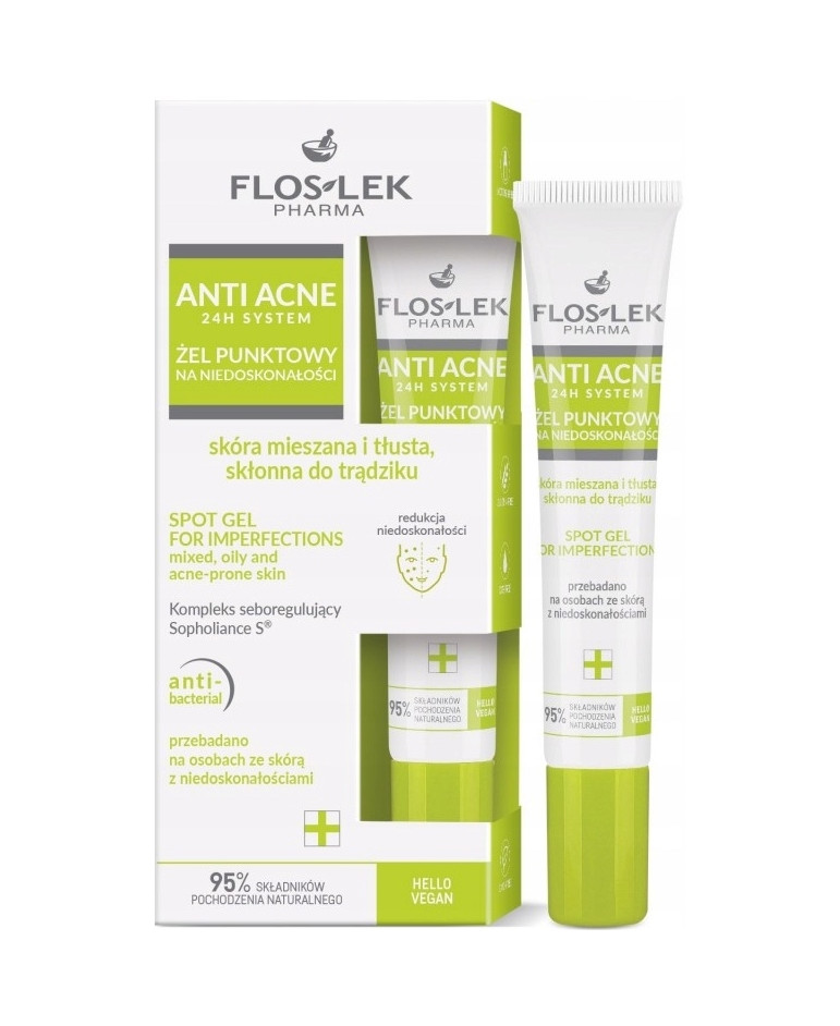 Żel punktowy przeznaczony do cery trądzikowej korzystnie wpływa na regenerację skóry, zmniejszenie widoczności zmian skórnych oraz regulację wydzielania sebum.