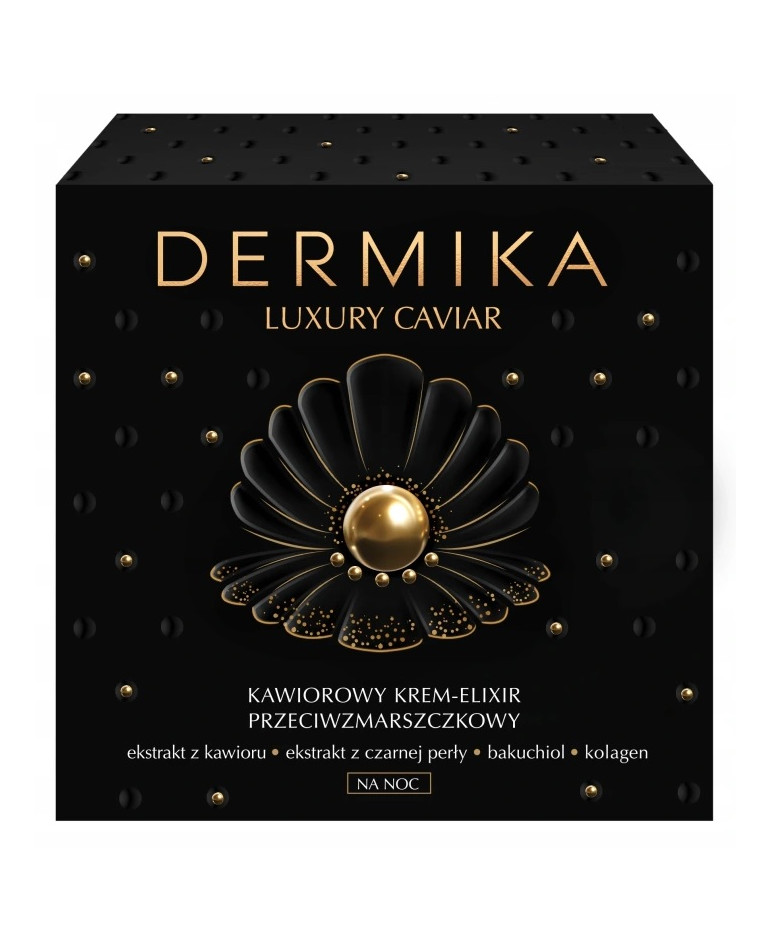 DERMIKA LUXURY CAVIAR to szlachetne połączenia drogocennych ekstraktów z kawioru i czarnej perły ze staranie wyselekcjonowanymi składnikami aktywnymi, które skutecznie pomagają przeciwstawiać się upływowi czasu przywracając skórze dojrzałej młodzieńczy blask. Połączenie wysoce skoncentrowanych składników aktywnych oraz wyjątkowo bogata konsystencja tworzą prawdziwie ekskluzywny rytuał piękna dla wymagającej skóry dojrzałej.