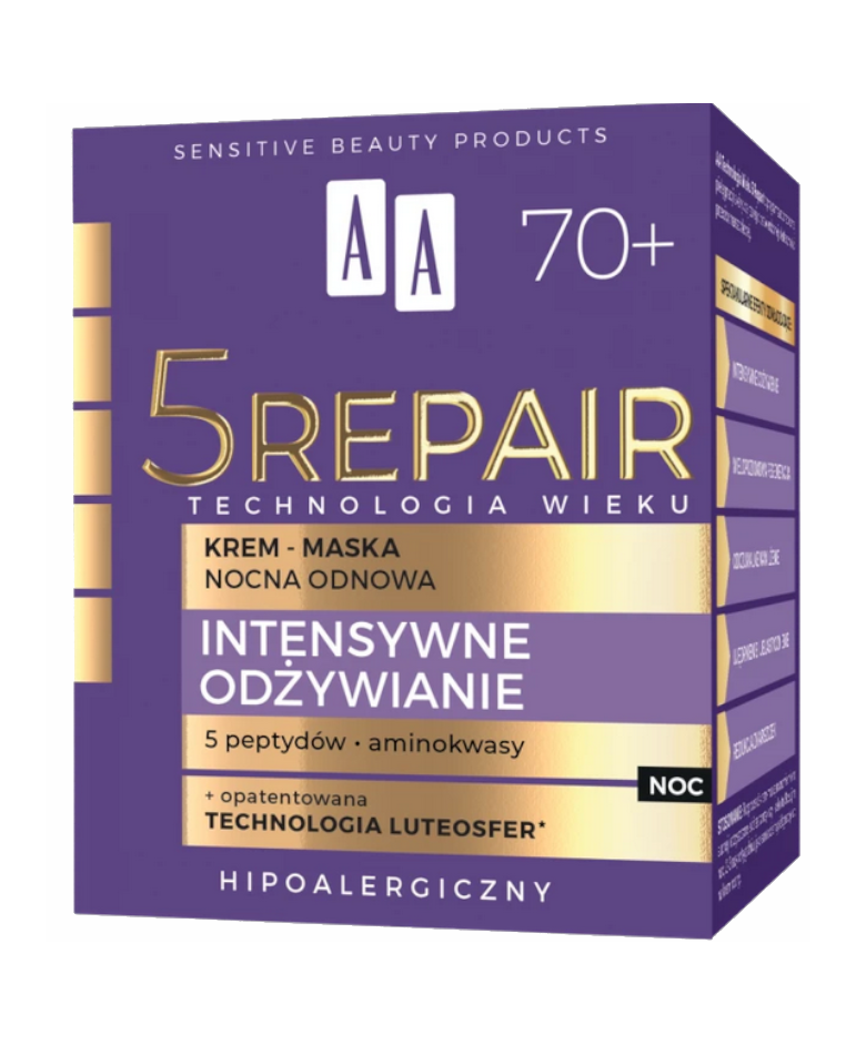 AA Technologia Wieku 5 Repair to program zaawansowanej pielęgnacji skóry dojrzałej opartej na opatentowanej Technologii luteosfer o potwierdzonej skuteczności przeciwzmarszczkowej.
