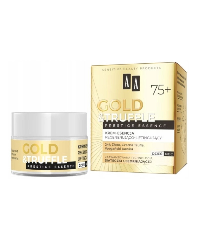 AA GOLD& TRUFFLE PRESTIGE ESSENCE to wyjątkowa linia kremów-esencji do pielęgnacji skóry dojrzałej zawierająca ekskluzywne, nietuzinkowe składniki, aby zapewnić skórze kompleksową i skuteczną pielęgnację przeciwzmarszczkową.