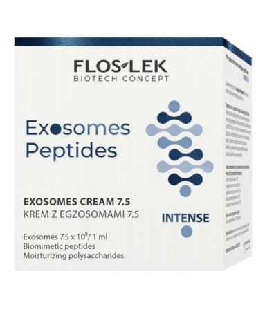 Krem Floslek redukcję zmarszczek aż w 5 wymiarach zawdzięcza zastosowaniu innowacyjnego połączenia roślinnych egzosomów z Centella asiatica, których jest aż do 750 milionów w 1 ml kremu! z kompleksem biomimetycznych peptydów i polisacharydami z drzewa Tara.