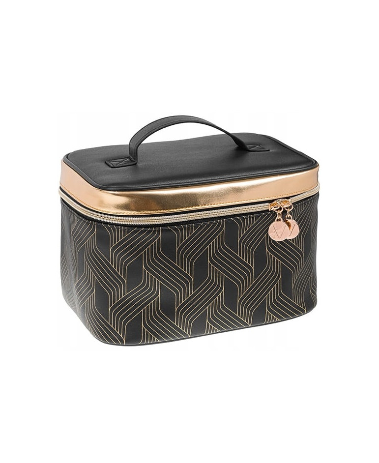 Czarny kuferek ze złotymi elementami umożliwią przechowywanie niezbędnych kosmetyków i akcesoriów. Wykonana z materiału łatwego w czyszczeniu.