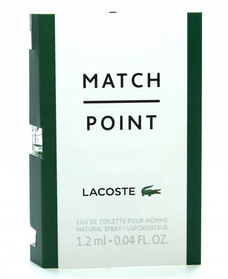 Widzowie wstrzymują oddech i czekają w napięciu: po której stronie linii spadła piłka i pozostawiła ślad na nawierzchni kortu? Koncentracja, umiejętności i siła: to zwycięski moment przesądzi o wyniku meczu. Marka Lacoste swoim nowym męskim zapachem Match Point odzwierciedla tę decydującą chwilę, która może okazać się punktem zwrotnym. Ten wyjątkowy zapach określają zaskakujące zielone nuty na tle eleganckiej, wyrafinowanej, drzewnej bazy.