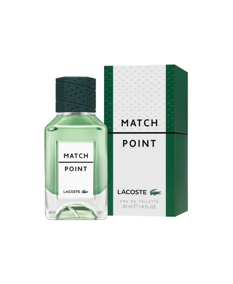 Widzowie wstrzymują oddech i czekają w napięciu: po której stronie linii spadła piłka i pozostawiła ślad na nawierzchni kortu? Koncentracja, umiejętności i siła: to zwycięski moment przesądzi o wyniku meczu. Marka Lacoste swoim nowym męskim zapachem Match Point odzwierciedla tę decydującą chwilę, która może okazać się punktem zwrotnym. Ten wyjątkowy zapach określają zaskakujące zielone nuty na tle eleganckiej, wyrafinowanej, drzewnej bazy.