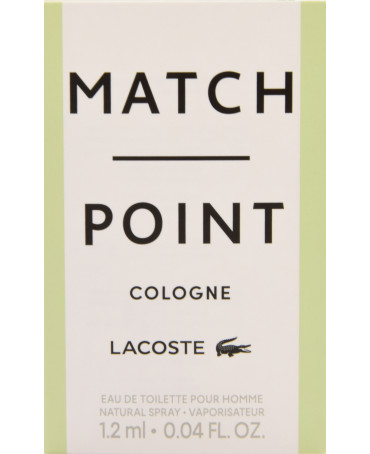 Widzowie wstrzymują oddech i czekają w napięciu: po której stronie linii spadła piłka i pozostawiła ślad na nawierzchni kortu? Koncentracja, umiejętności i siła: to zwycięski moment przesądzi o wyniku meczu. Marka Lacoste swoim nowym męskim zapachem Match Point odzwierciedla tę decydującą chwilę, która może okazać się punktem zwrotnym. Ten wyjątkowy zapach określają zaskakujące zielone nuty na tle eleganckiej, wyrafinowanej, drzewnej bazy.