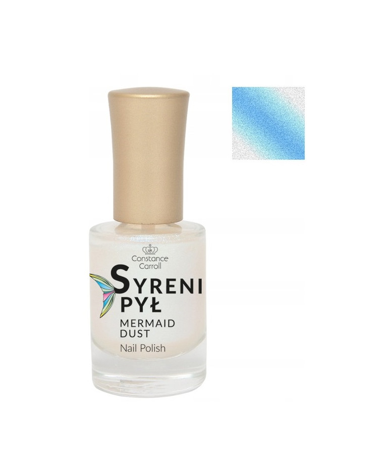 Lakier do paznokci z drobinkami kolorowego pyłku, który nadaje efekt mieniącej się tafli.