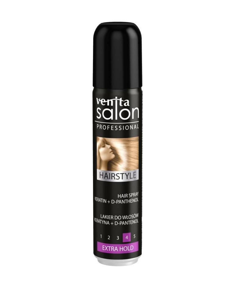 VENITA SALON PROFESSIONAL HAIR SPRAY - Lakier do włosów z keratyną i D-pantenolem. Zapewnia mocne utrwalenie fryzury bez efektu sklejania włosów. Zwiększa elastyczność, objętość i połysk włosów.