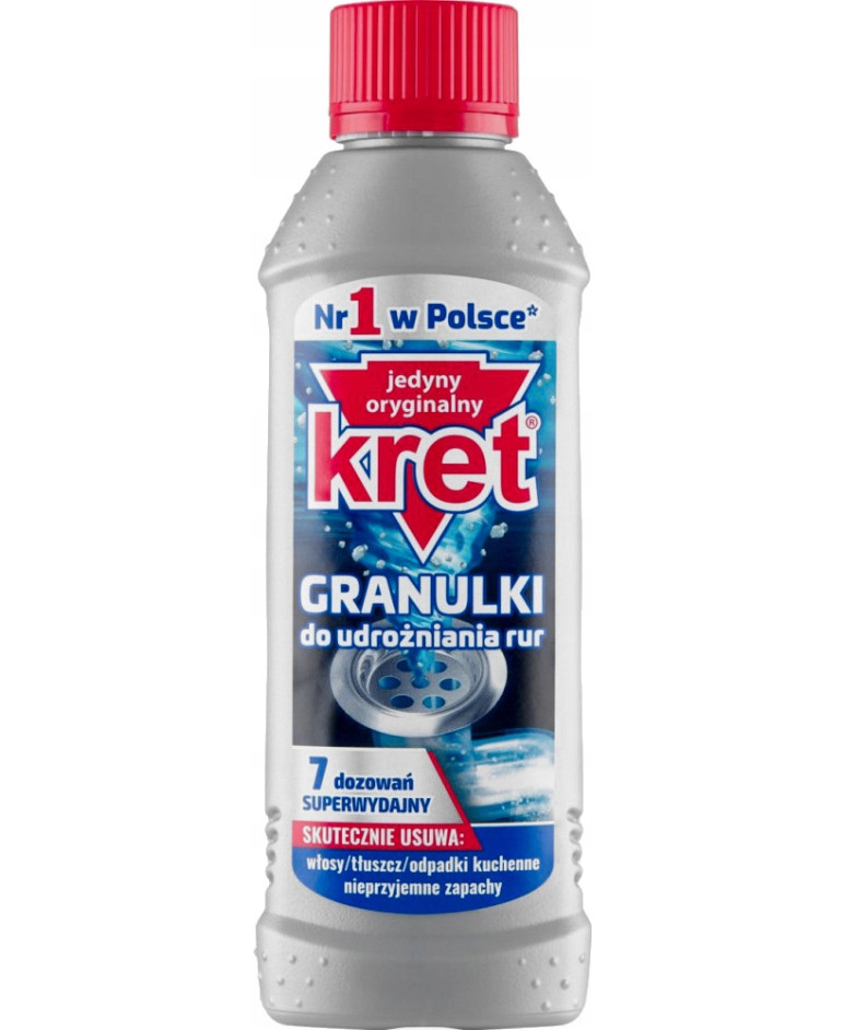 Granulki Kret do udrożniania rur zapewnia chemiczne oczyszczenie i udrożniania rur i syfonów.