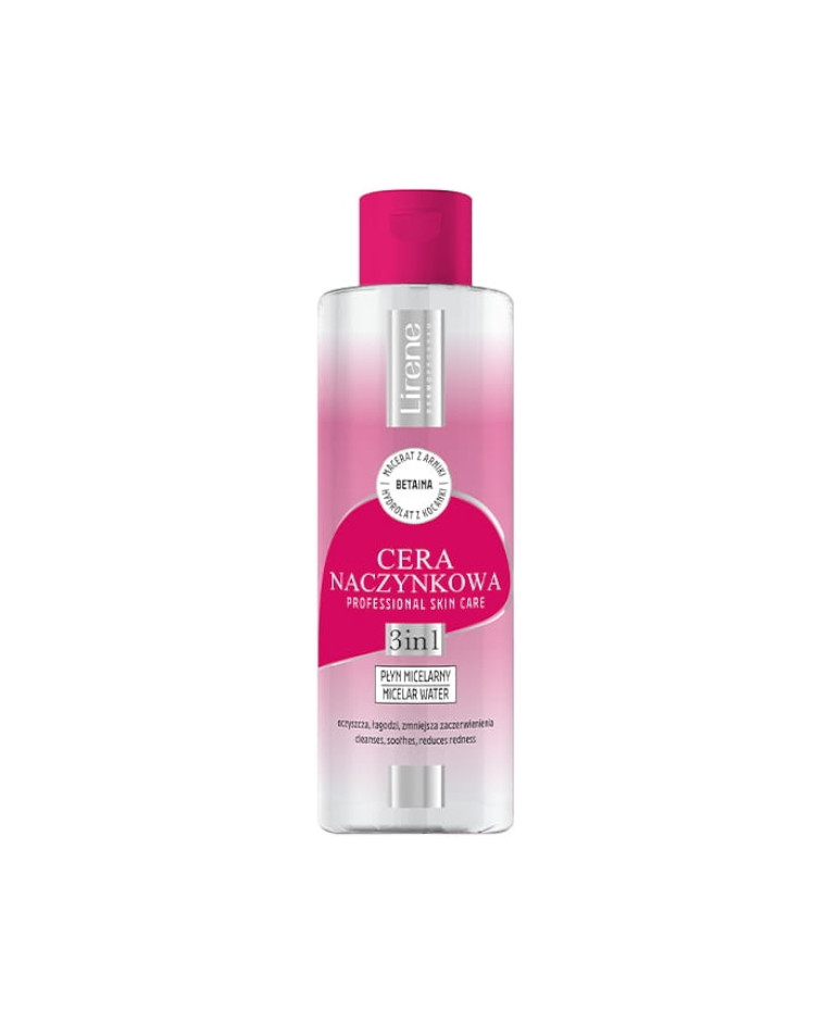 Delikatny płyn micelarny do demakijażu, który precyzyjnie oczyszcza skórę. Dedykowany jest cerze naczynkowej i wrażliwej. Przywraca świeżość skórze, nie powodując podrażnień - Lirene Cera Naczynkowa.