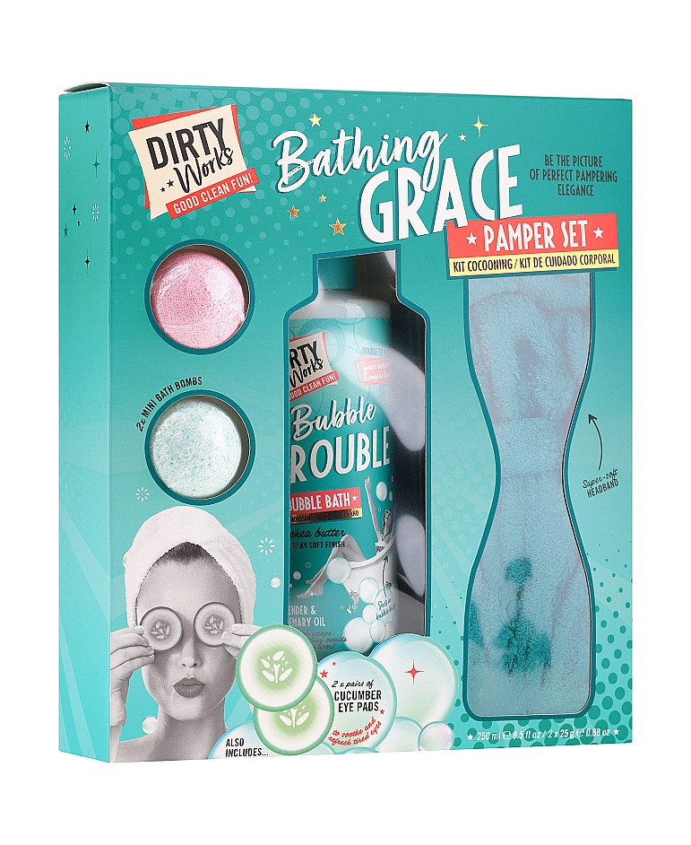 Dirty Works Bathing Grace Pamper Set to zestaw doskonałych produktów do kąpieli, który zapewni Ci relaks i odprężenie w domowym spa.