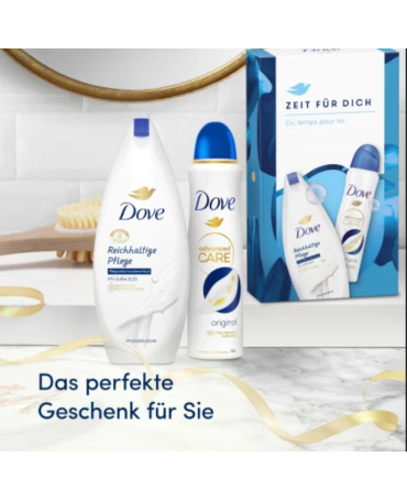 Zestaw pielęgnacyjny od Dove to aż dwa kultowe kosmetyki do codziennej pielęgnacji. Idealny pomysł na prezent.