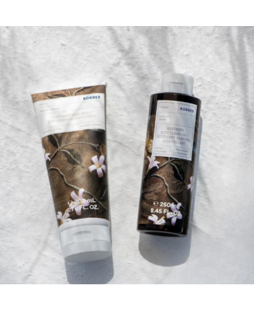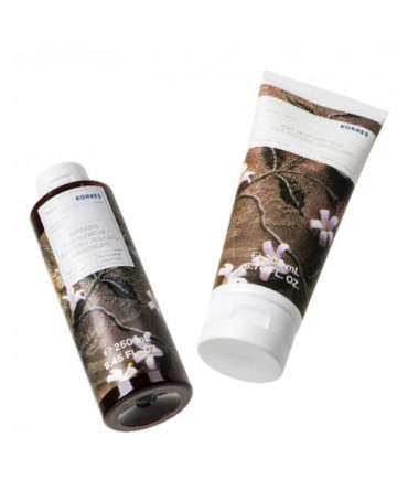 Zestaw do pielęgnacji ciała JASMINE składający się z nawilżającego mleczka do ciała i kremowego, pieniącego się żelu pod prysznic urzeka delikatnym zapachem świeżych kwiatów jaśminu.