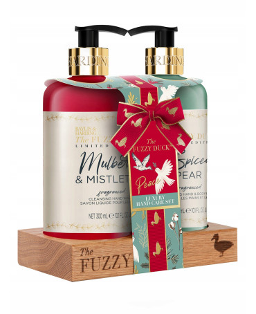 Mydło pozostawia skórę delikatnie oczyszczoną, a balsam do rąk i ciała nawilża, pozostawiając skórę jedwabiście gładką. Całość na drewnianej podstawce zapakowane w gustowne swiąteczne opakowanie.