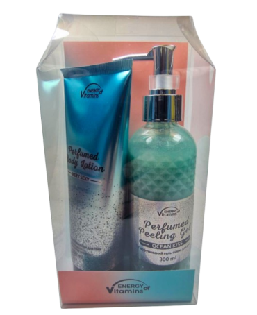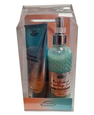 Zestaw prezentowy do ciała ml składający się z aromatycznego żelu z peelingiem pod prysznic Ocean Kiss oraz perfumowanego balsamu Am Very Sexy - idealny pomysł na upominek.