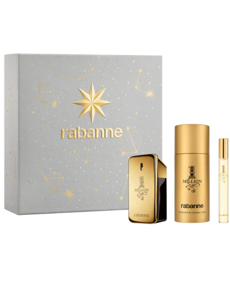 Rozpieść mężczyznę swojego życia odważnym, bogatym zapachem Rabanne 1 Million z zestawem upominkowym Eau de Toilette – trio zapachów nasyconych korzenno-skórzanym aromatem 1 Million.