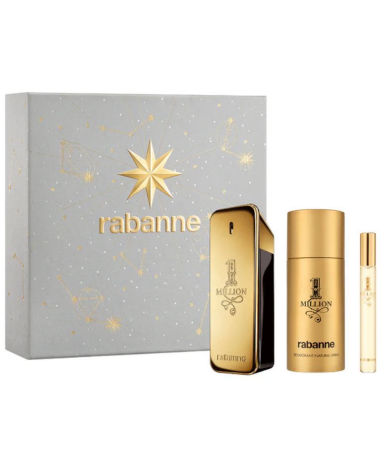 Rozpieść mężczyznę swojego życia odważnym, bogatym zapachem Rabanne 1 Million z zestawem upominkowym Eau de Toilette – trio zapachów nasyconych korzenno-skórzanym aromatem 1 Million.