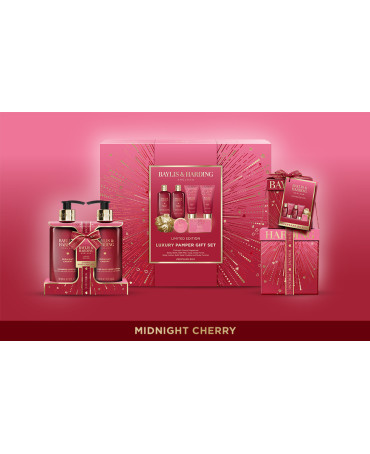Kolekcja Midnight Cherry, o słodko-kwaśnym zapachu wiśni, delikatnych migdałach i nutce likieru, łączy świąteczną atmosferę z ciepłą magią zimowych wieczorów.