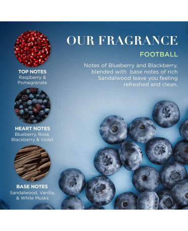 Nasza linia Blueberry Fizz z nutami serca jagód i jeżyn, zmieszanymi z nutami bazy bogatego i orzeźwiającego drzewa sandałowego, zapewni Ci uczucie odświeżenia i czystości.
