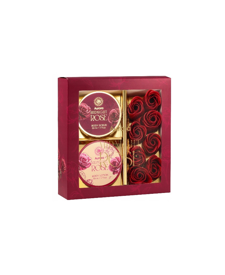Poznaj luksusowy zestaw prezentowy Aurora Midnight Rose, którego cudowny wygląd i niezapomniany zapach to idealne zaproszenie do codziennej pielęgnacji.