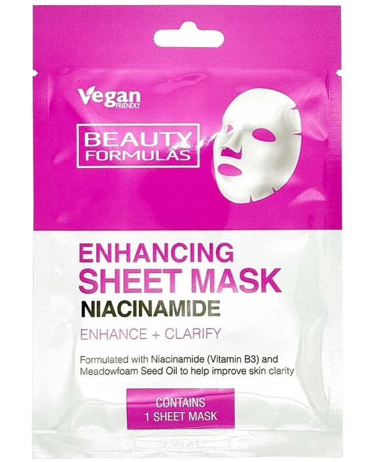 Beauty Formulas Enhancing Sheet Mask to wzmacniająca maska w płacie, która zawiera niacynamid (witaminę B3) oraz olej z nasion Meadowfoam. Te składniki pomagają poprawić kondycję skóry, wzmacniając ją i rozjaśniając.