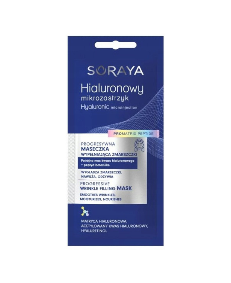Podaruj swojej skórze ekspresową dawkę młodości dzięki maseczce wypełniającej zmarszczki Soraya Hialuronowy Mikrozastrzyk PRO-MATRIX. Ta innowacyjna maseczka, stworzona z myślą o skórze dojrzałej, zapewnia natychmiastowy efekt wygładzenia, nawilżenia i odżywienia.