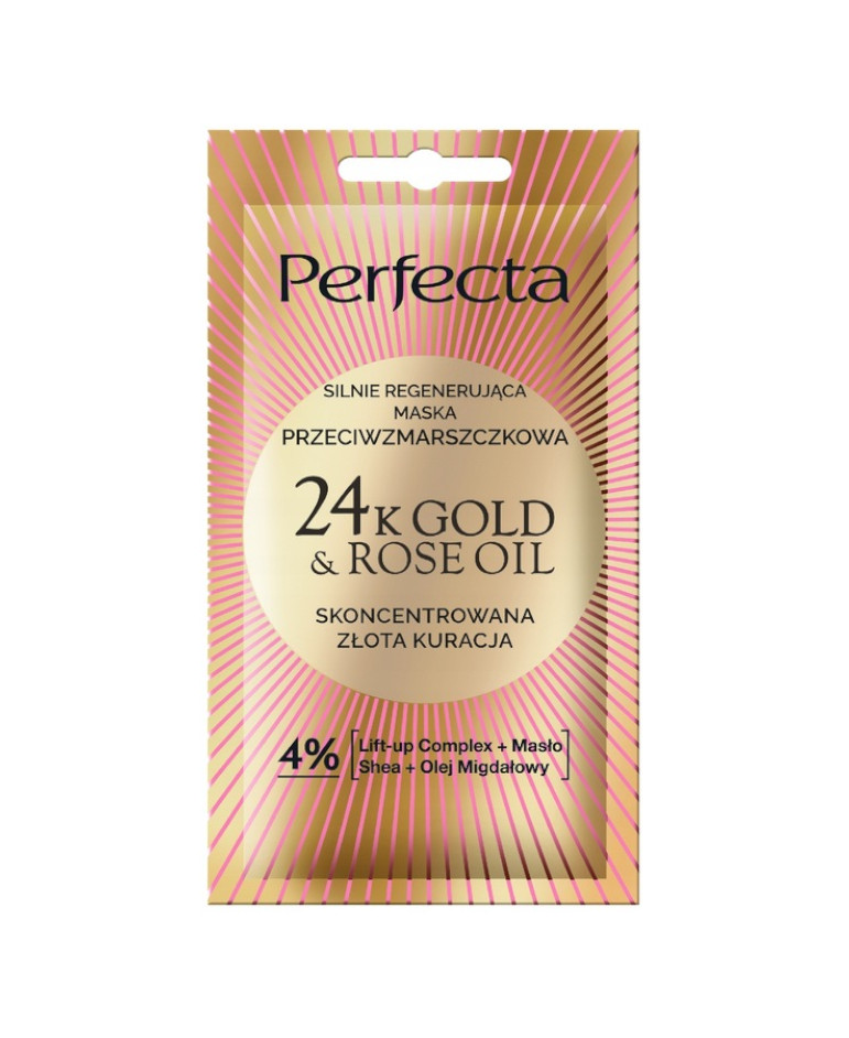Podaruj swojej skórze odrobinę luksusu dzięki silnie regenerującej masce przeciwzmarszczkowej 24K Gold & Rose Oil – skoncentrowanej złotej kuracji