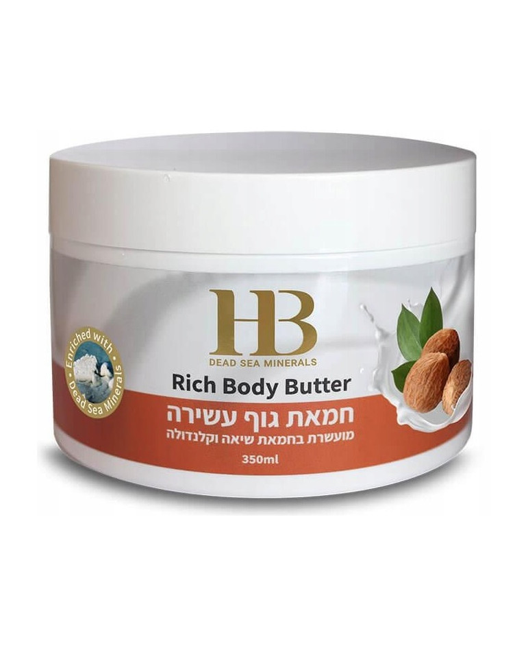 Wzbogacone masło do ciała intensywnie odżywiające skórę, wzbogacone kwasem hialuronowym i minerałami z Morza Martwego.