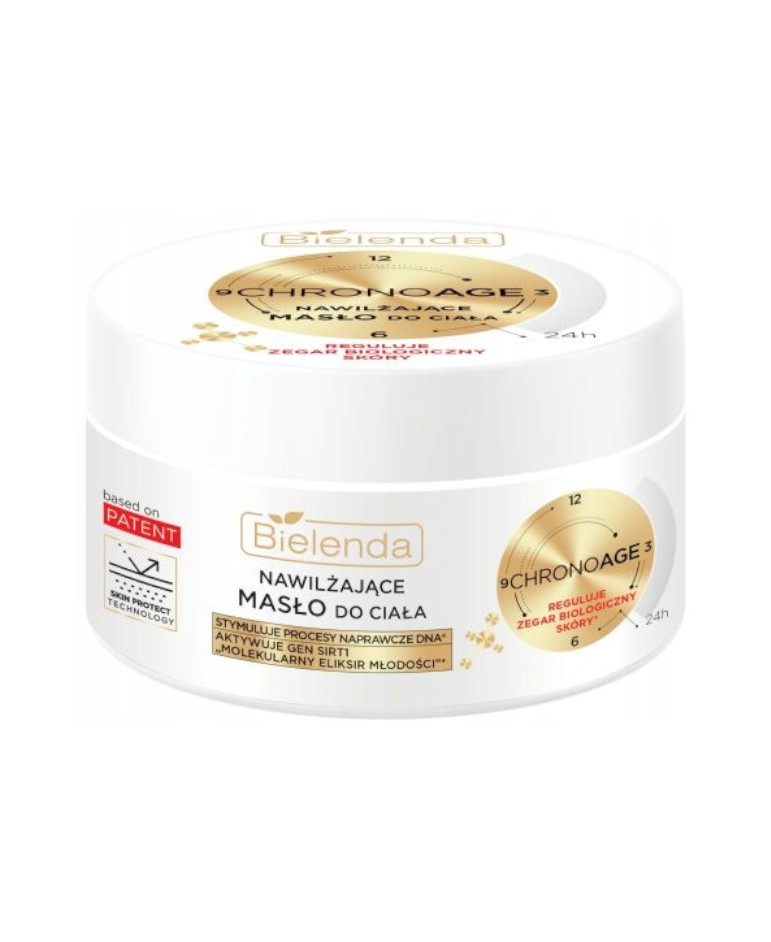 Bielenda CHRONOAGE Nawilżające Masło do Ciała to zaawansowany produkt, który łączy w sobie najnowsze osiągnięcia w dziedzinie kosmetologii i biologii skóry. Dzięki unikalnej formule, masło nie tylko intensywnie nawilża i ujędrnia skórę, ale także chroni ją przed szkodliwymi czynnikami zewnętrznymi i wspomaga naturalne procesy naprawcze. To idealne rozwiązanie dla każdej kobiety pragnącej zachować zdrowy i młody wygląd swojej skóry.