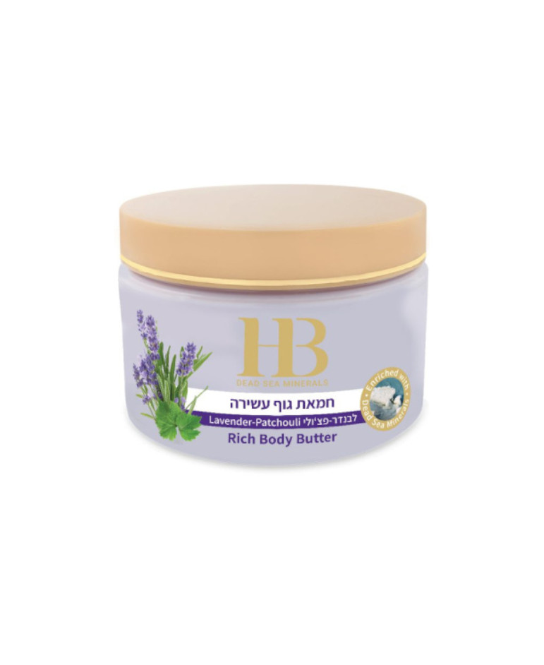 H&B Masło do ciała lawendowo-paczulowe to luksusowy produkt pielęgnacyjny, który łączy skuteczność nawilżania i regeneracji z relaksującym, zmysłowym zapachem. Dzięki bogatej formule zawierającej naturalne olejki, witaminy i minerały z Morza Martwego, zapewnia kompleksową pielęgnację skóry, pomagając w utrzymaniu jej zdrowego i młodzieńczego wyglądu. Idealne dla każdego typu skóry, szczególnie suchej, i zalecane dla osób narażonych na rozstępy, w tym kobiet w ciąży.