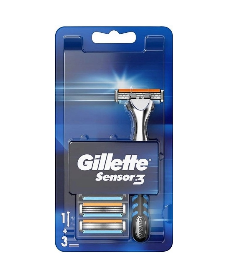 Maszynka do golenia dla mężczyzn Gillette Sensor3 jest wyposażona w trzy ostrza oraz pasek Lubrastrip, który zapewnia gładki poślizg.