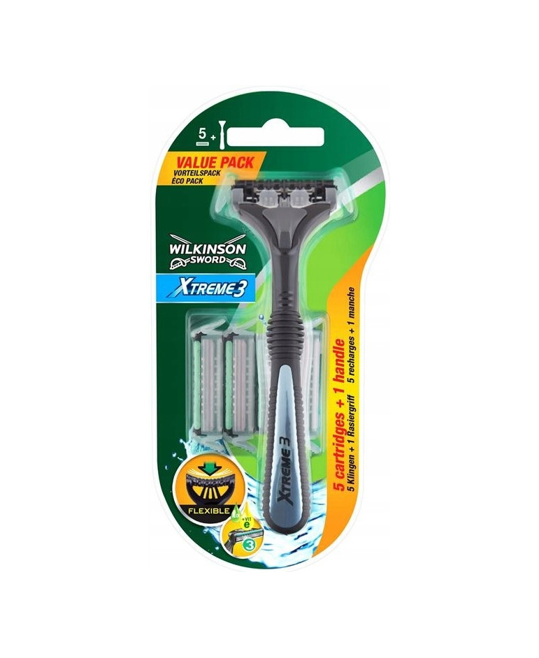 Wilkinson Extreme 3 zapewnia wydajność golarki klasy premium z wygodą oraz higieną. 3 elastyczne ostrza i obrotowa głowica dopasowują się do konturów twarzy, zapewniając przyjemne i wygodne golenie. Zawarty w maszynce pasek nawilżający odżywia skórę.